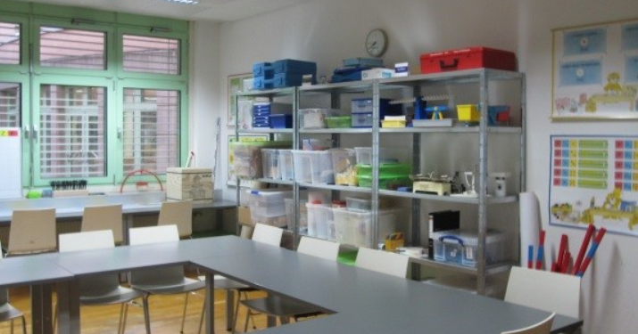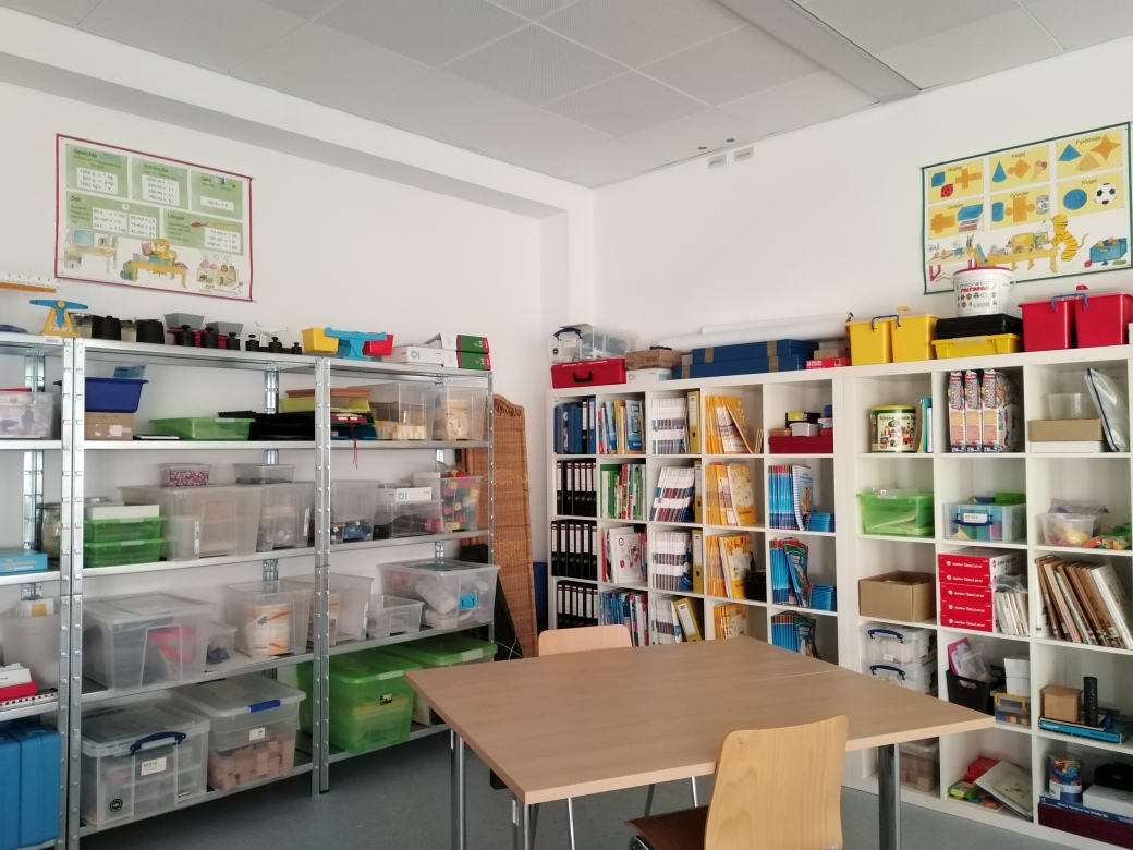 Der Raum versucht zu selbständigem offenen Arbeiten und intensiver Auseinandersetzung mit Unterrichtsinhalten aufzufordern.
