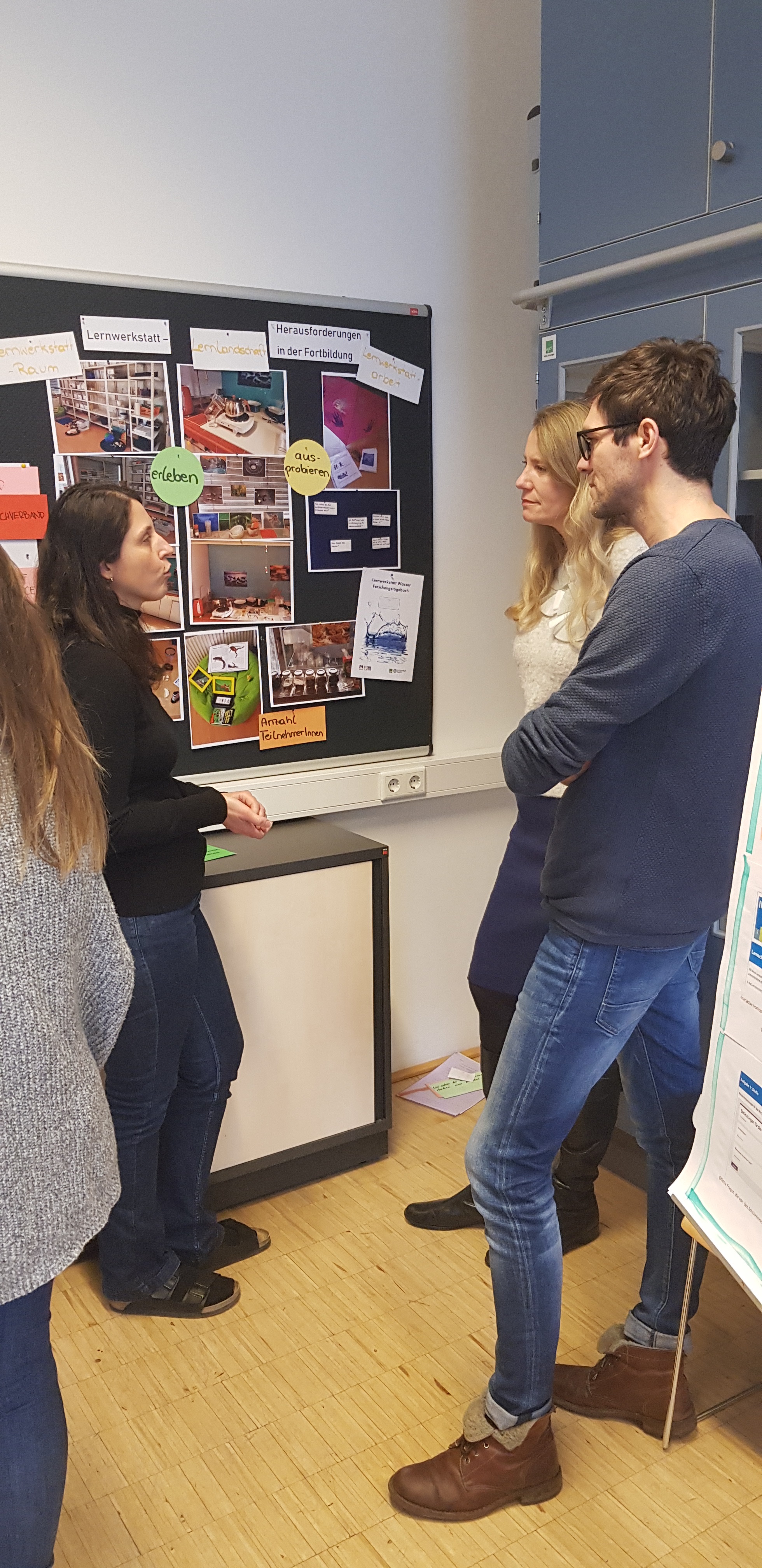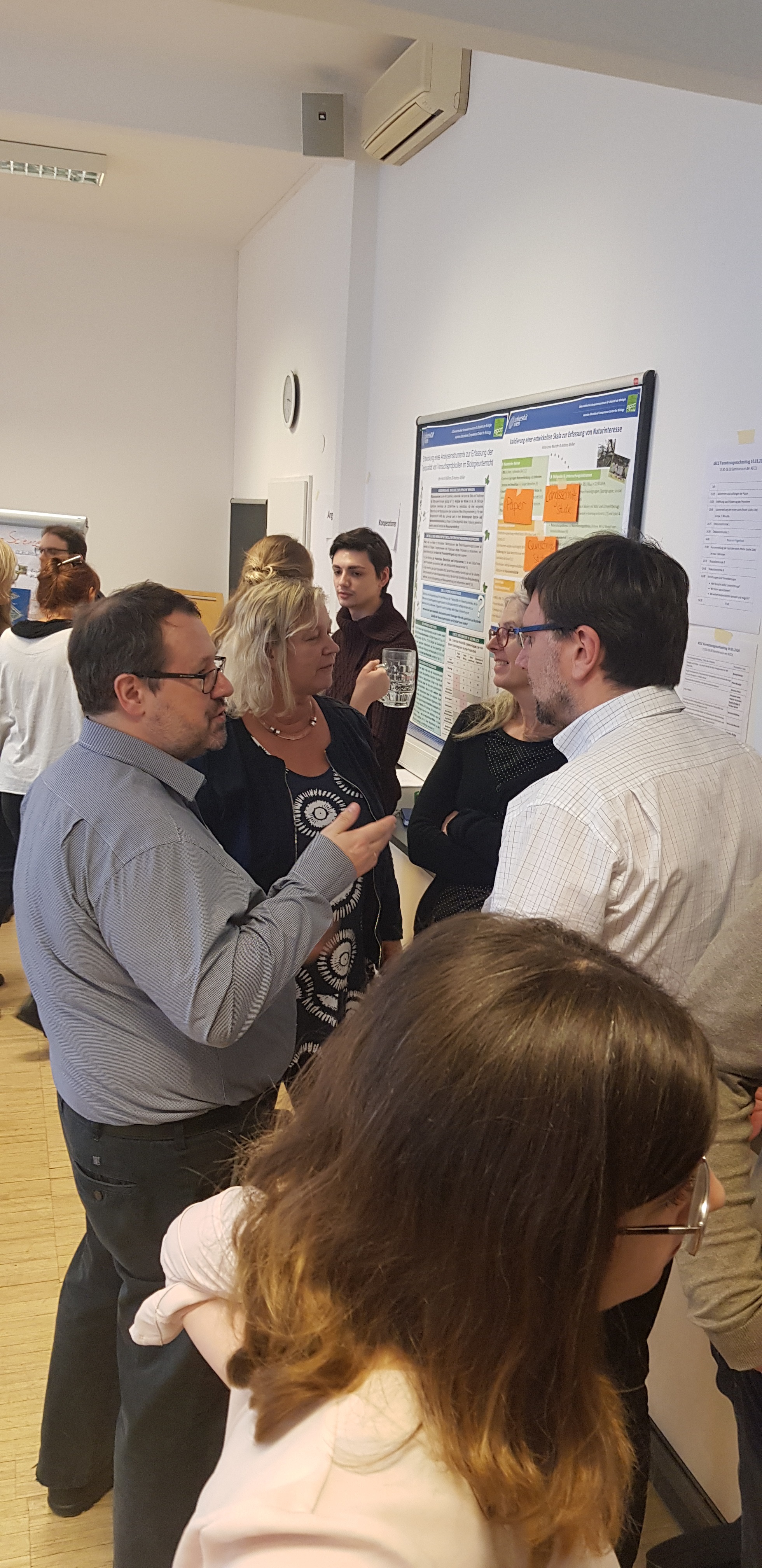 Ziel war es, aktuelle Forschungsprojekte in Form von Postern vorzustellen und gemeinsam zu diskutieren, um mögliche Synergien zu identifizieren und einander mit den jeweils unterschiedlichen Expertisen zu unterstützen. Es wurden 12 Poster präsentiert und ausführlich diskutiert. Das Projekt „Lernwerkstatt: Herausforderungen in der Fortbildung“ wurde gemeinsam von Sandra Puddu und Barbara Holub präsentiert.